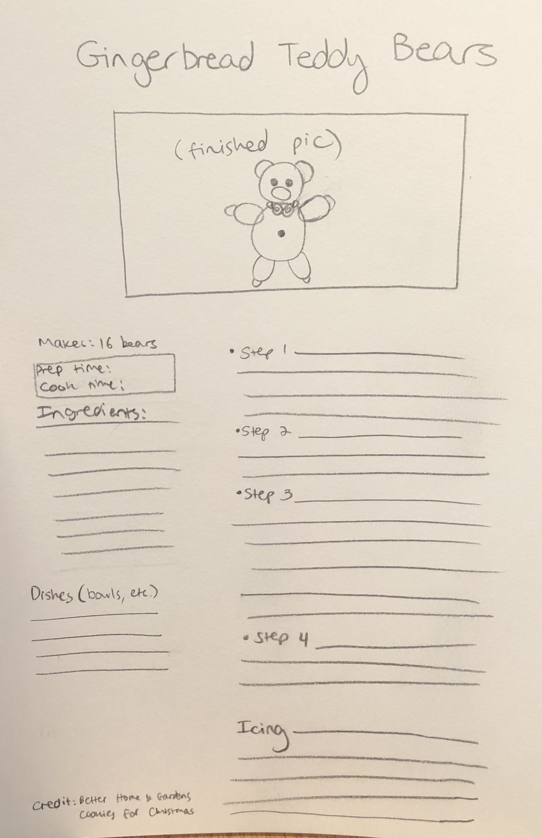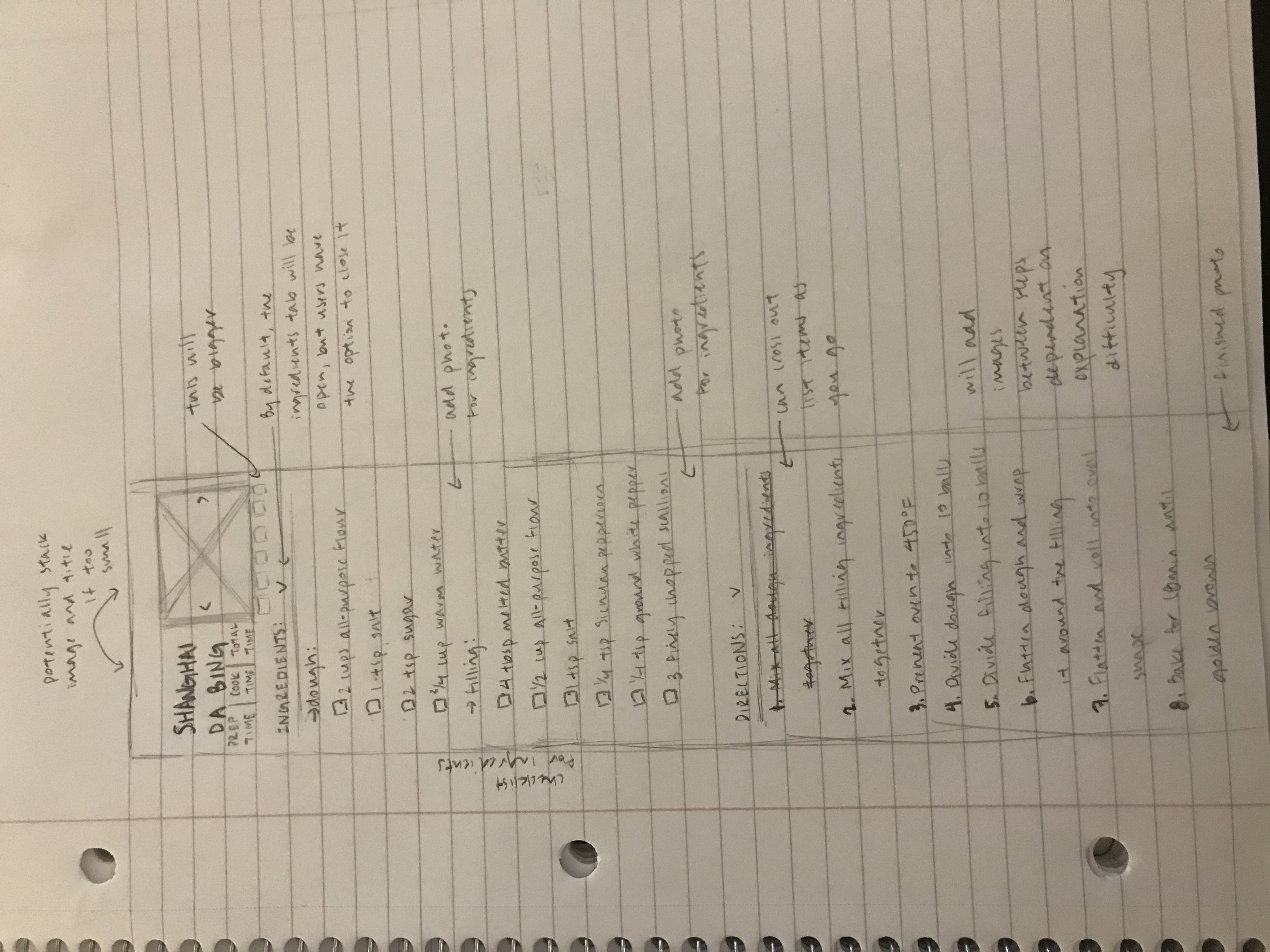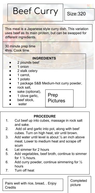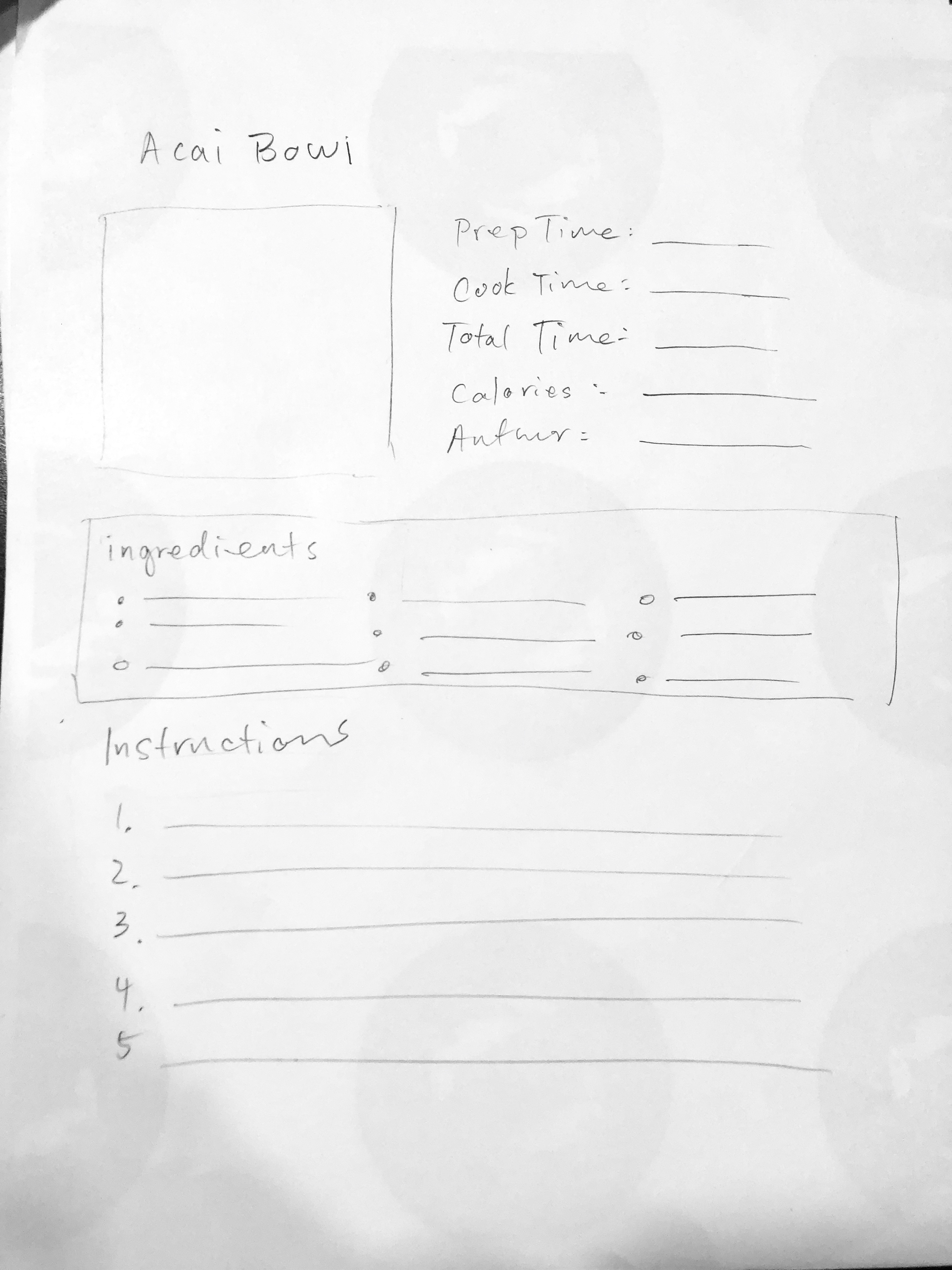In class today, meet with at least two different classmate to gather feedback about your recipe wireframe. You will gather feedback on your own recipe page from at least two people. You may also be asked to provide feedback to others as well. Cover all of the basic usability topics that make sense. View your recipe pages on your phones, and provide critiques from there. Discuss suggestions for not only usability improvements, but also visual improvements.
