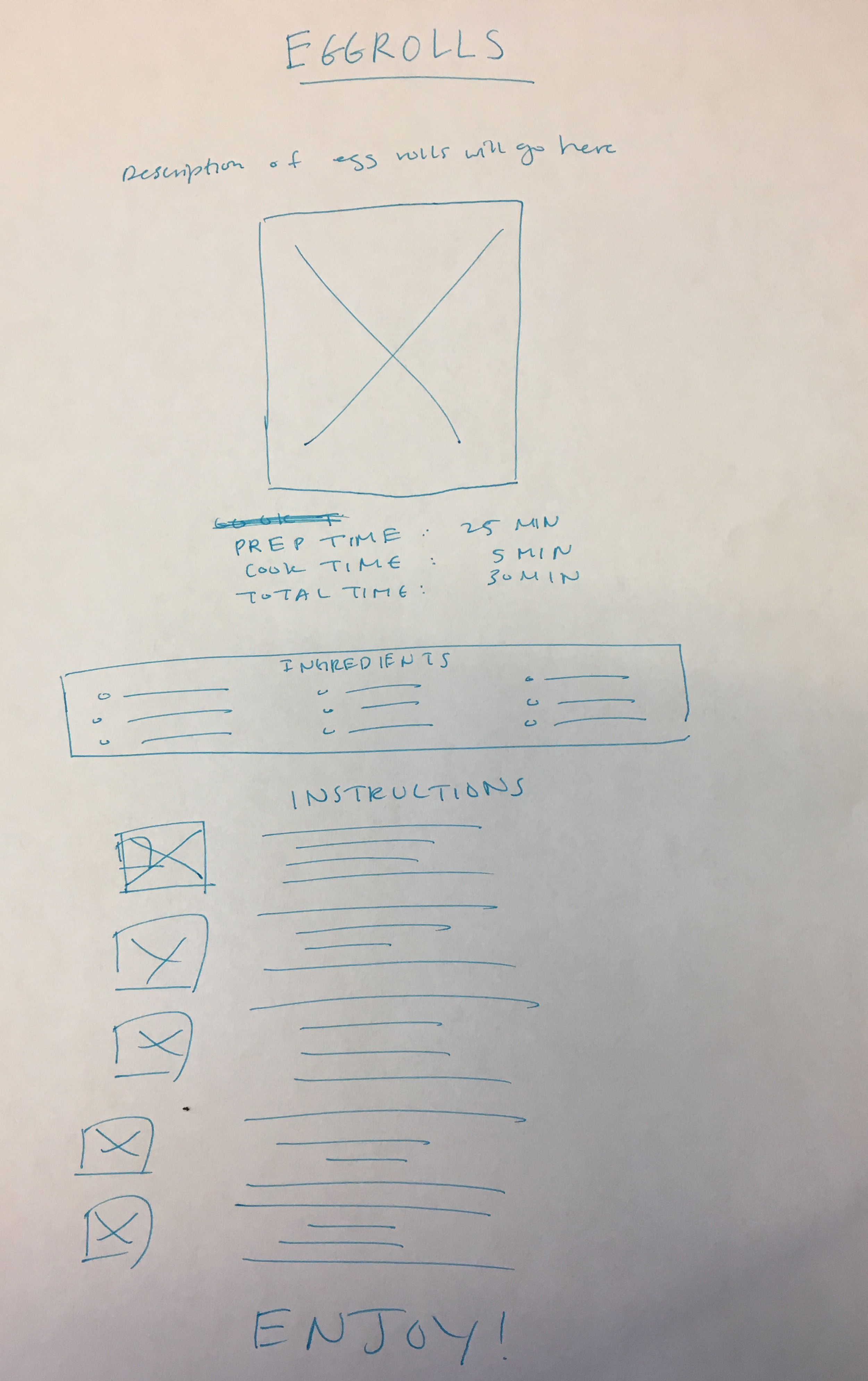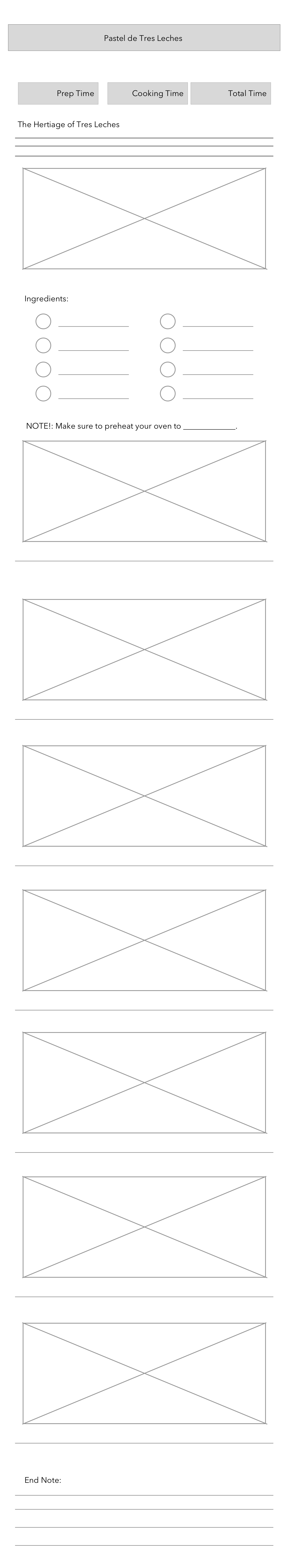 When you are confident in your recipe wireframe and plan, build it. This page will be built for mobile device screens only (phones), so it is safe at this point to completely disregard how the page looks on a desktop browser. Don't assume that we'll be fixing or addressing details later — Google your questions, come to lab, work with your peers, refer to your notes, do what it takes to complete the project to your (and my) satisfaction.